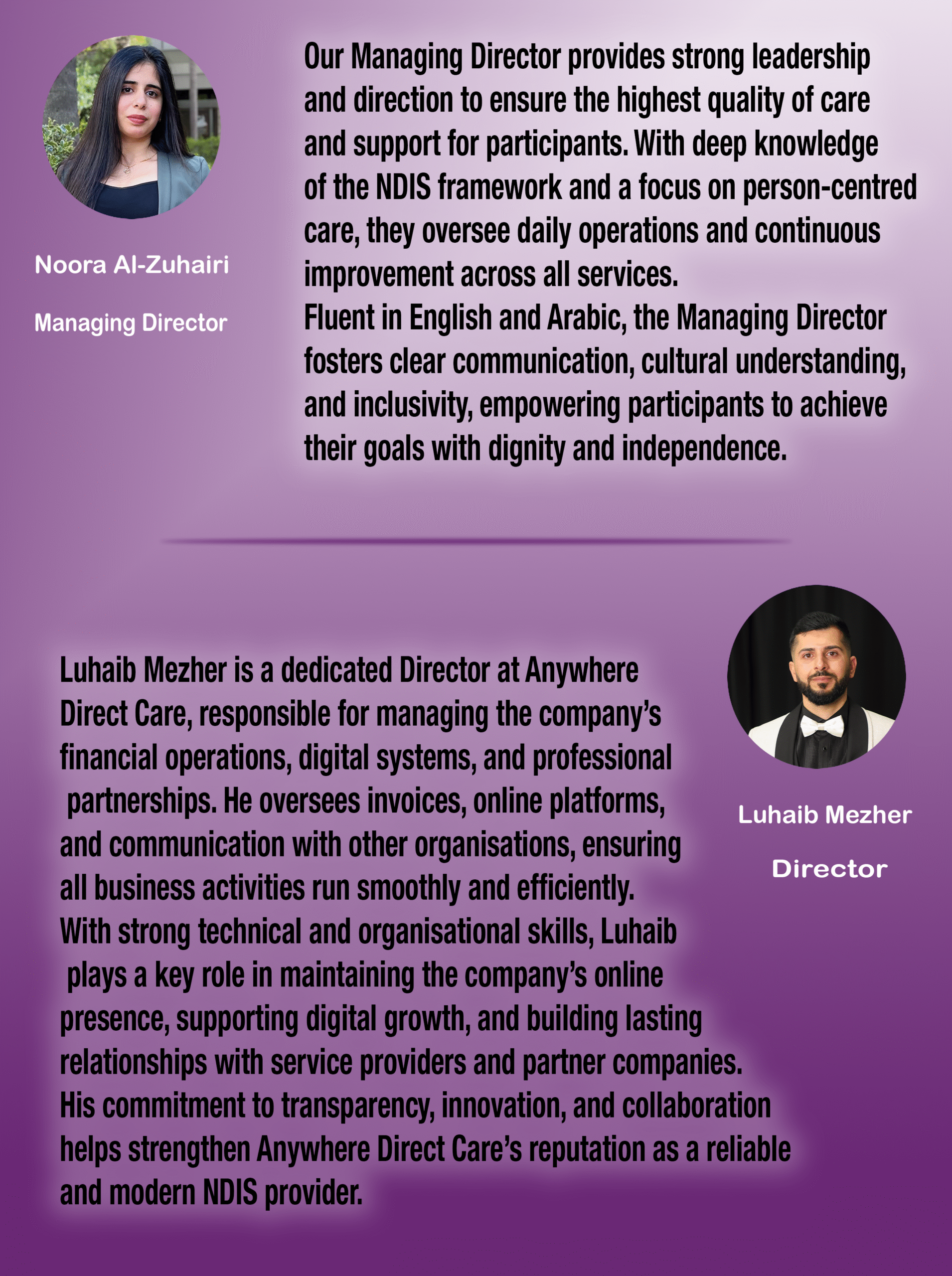 Our experienced team takes the time to understand each participant’s unique needs, ensuring care that’s personal, respectful, and reliable.
